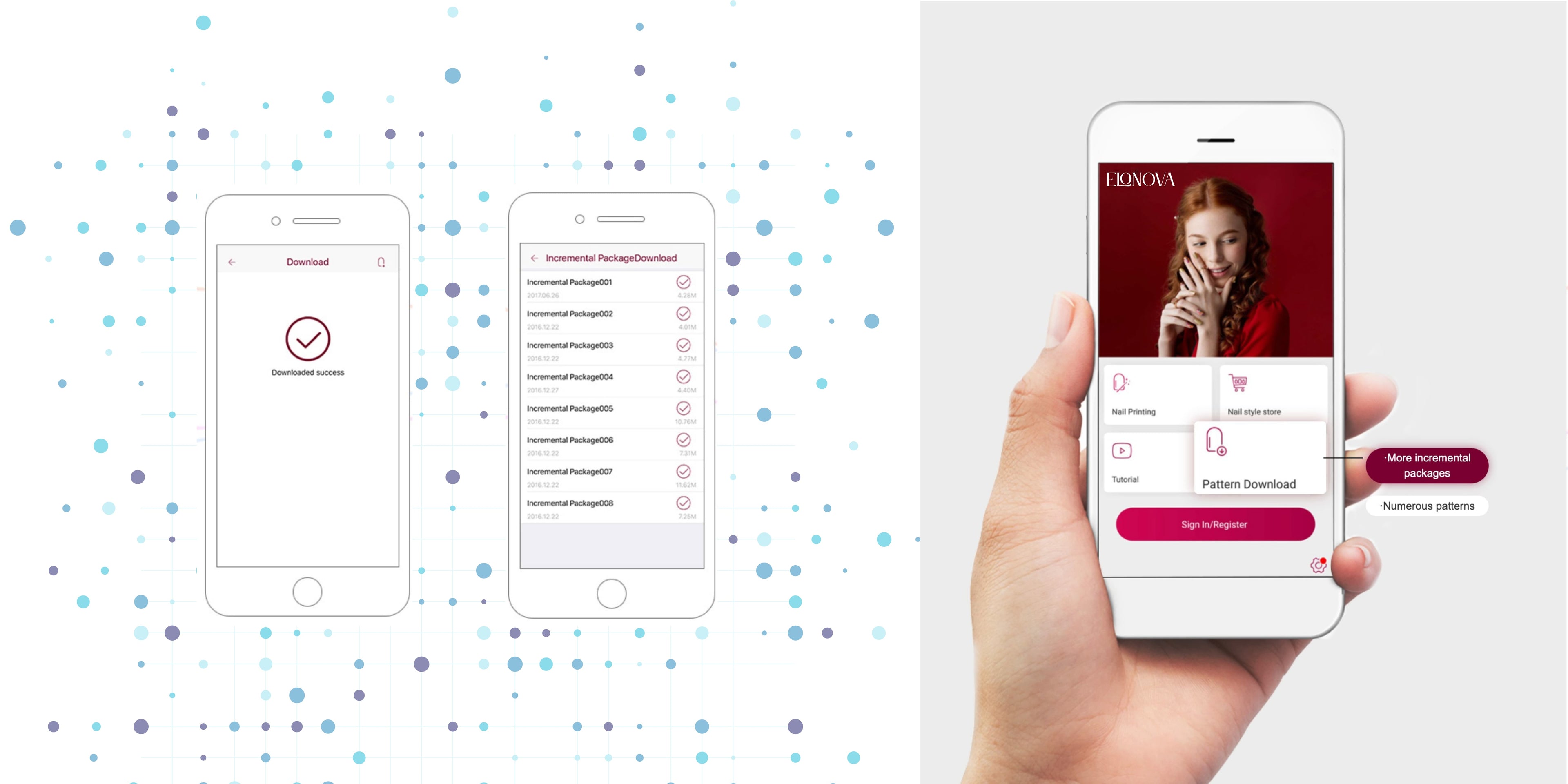 Med högupplöst utskriftsteknik får du salongsklassade, släta och eleganta naglar på bara några sekunder.
