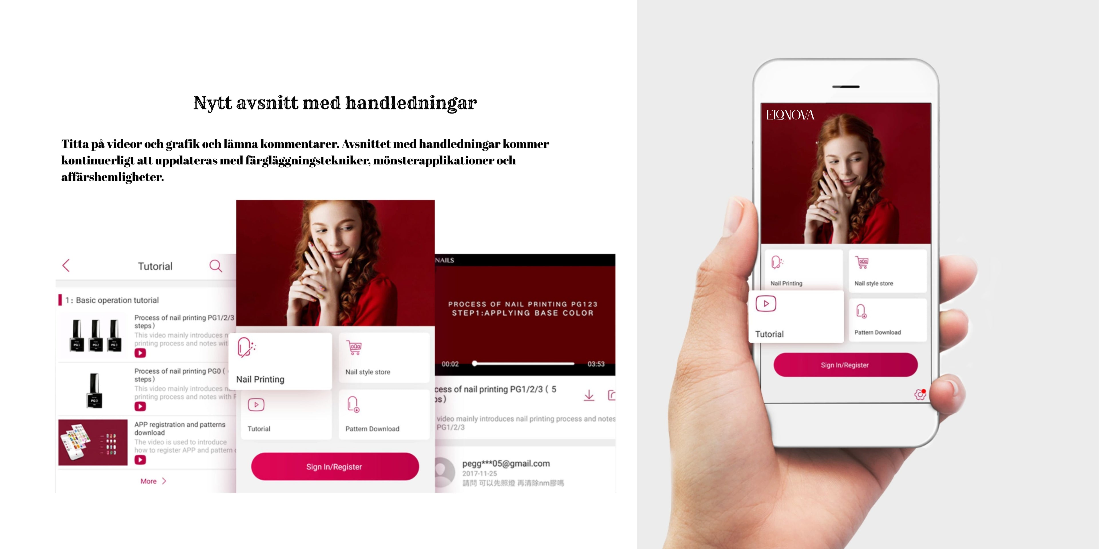 Välj bland hundratals färger, mönster och stilar – eller skapa dina egna motiv och överför dem direkt på naglarna.